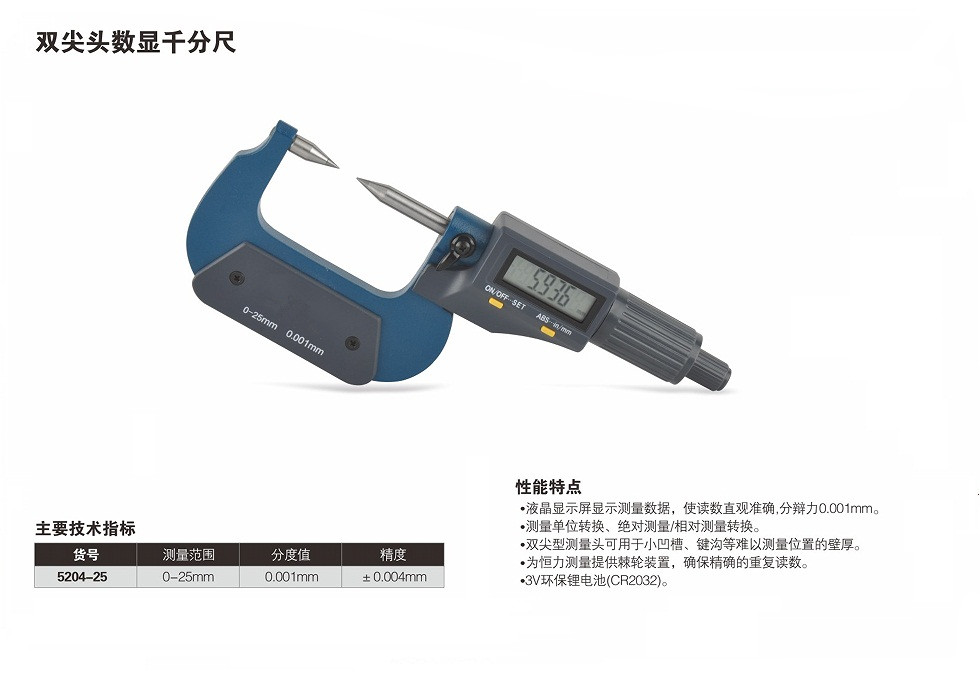 双尖头数显千分尺